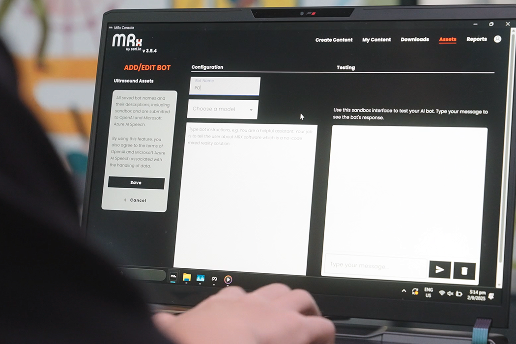 Add your assets (3D models, images or videos) and create A.I. bots for your Mixed Reality content.